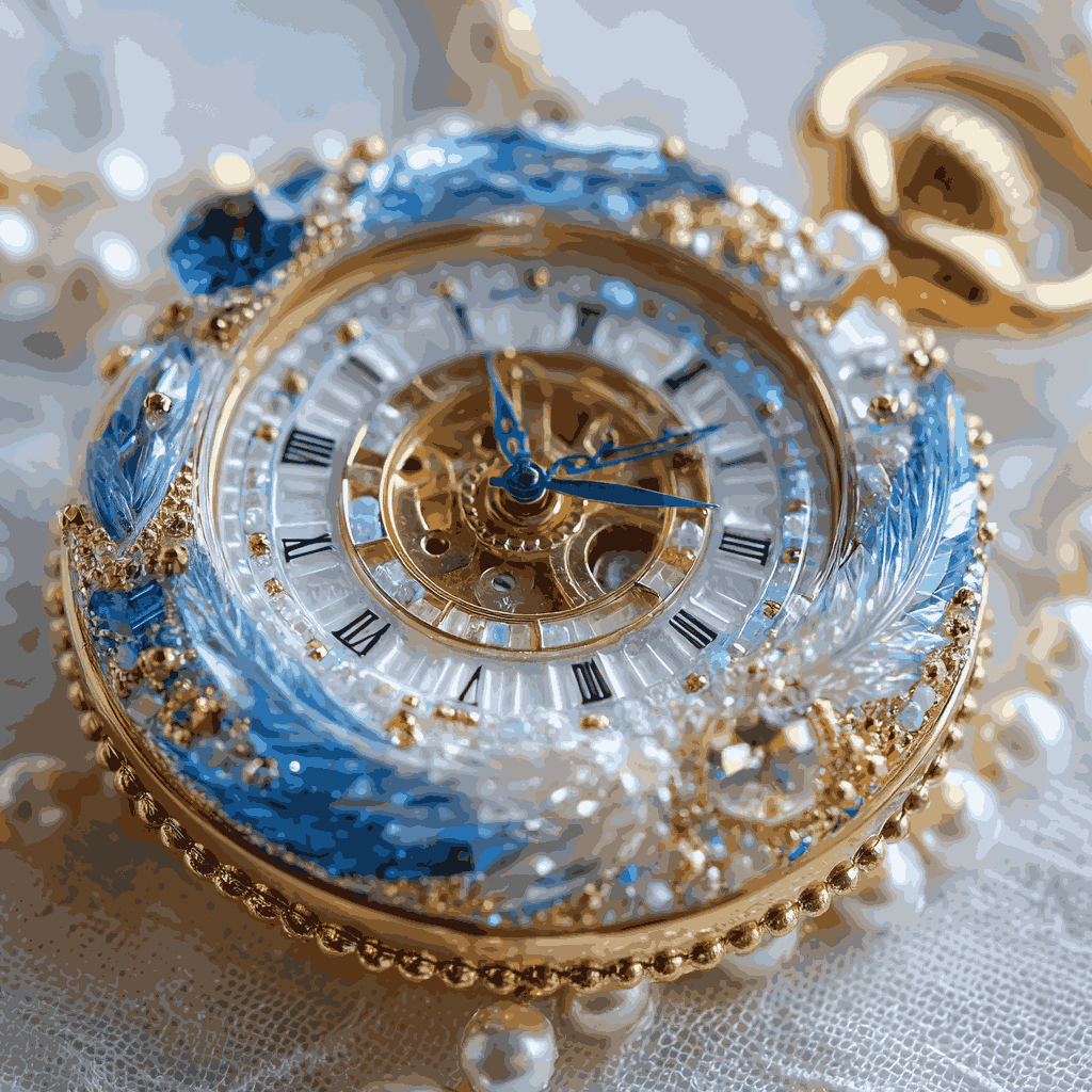 まるでおとぎ話の中から現れたような、幻想的なビーズの時計。